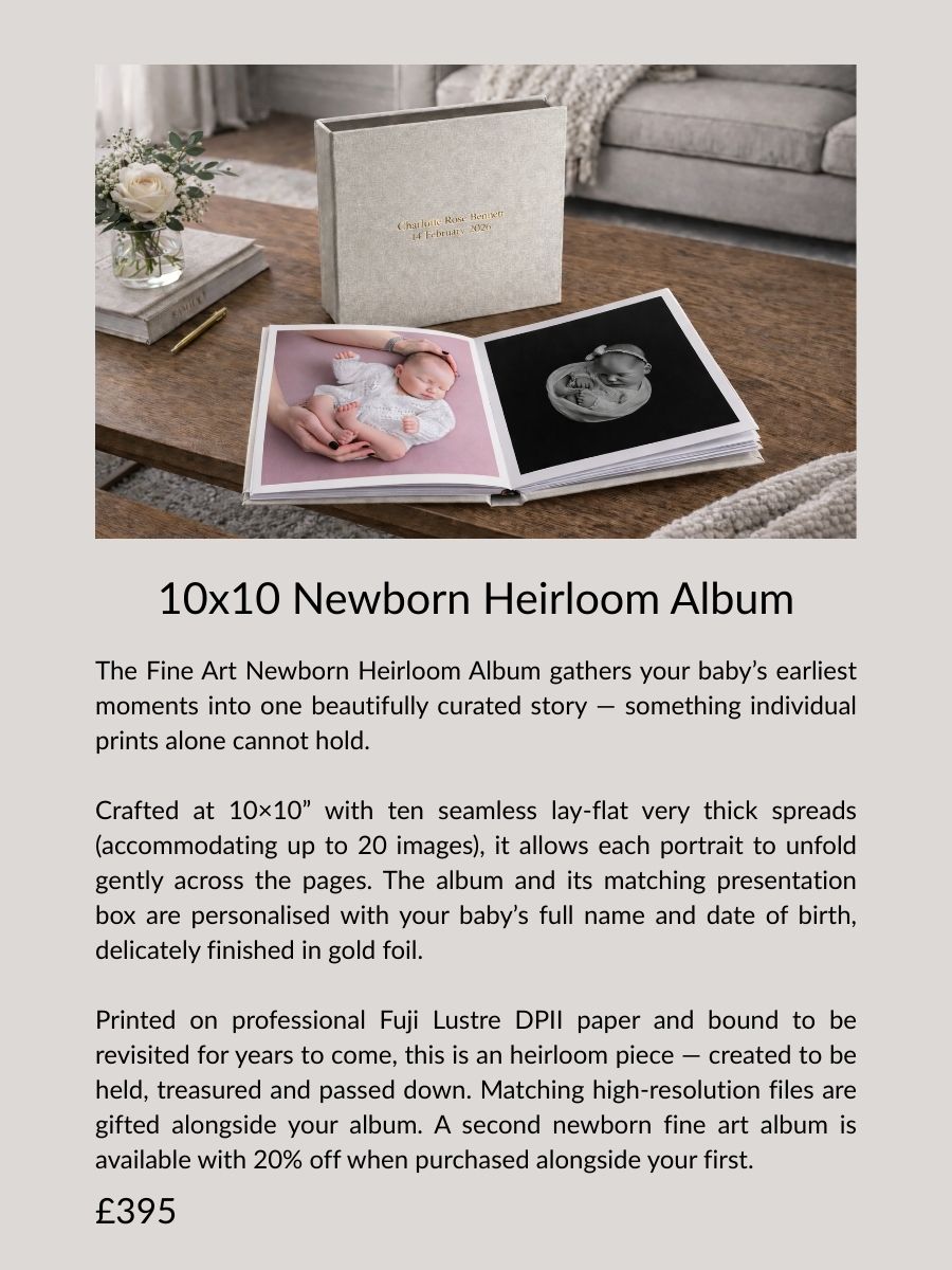 My wall art and fine art products are not available on the high street, nor mass-produced. They are created exclusively for my clients by a highly respected, family-run fine art workshop in England, established in 1949 and trusted by leading professional photographers. Every piece is meticulously handcrafted to the highest standards by award-winning specialists who work solely with fine art photographic products. Using exceptional materials and time-honoured processes, each artwork is carefully crafted, inspected, and finished by hand. All pieces are fully personalised and intentionally designed to reflect your family’s story — an investment in timeless, heirloom artwork made to be displayed with pride, deeply felt and passed down as part of your legacy.